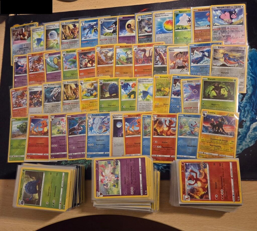 Es handelt sich um unsortierte Karten, daher sind auf jeden Fall doppelte Karten enthalten. Die Karten sind zu 99% aus Schwert und Schild.